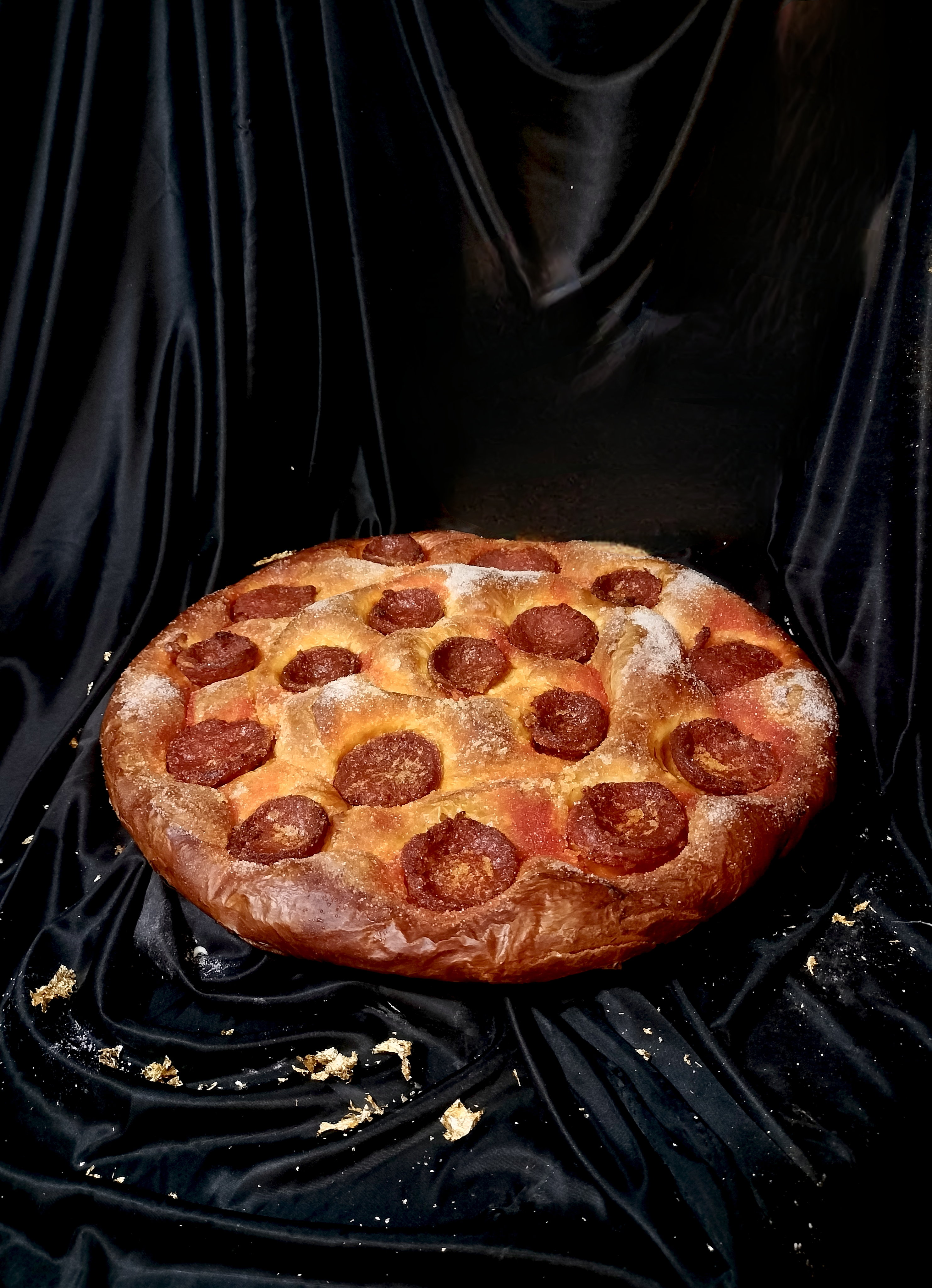 La ensaimada de sobrasada es una celebración del carácter indómito de Mallorca, un lienzo donde el rojo intenso de la sobrasada traza pinceladas ardientes sobre la suavidad dorada de la masa. Este contraste evoca la fuerza de los paisajes mallorquines: las montañas robustas frente al suave vaivén del mar.